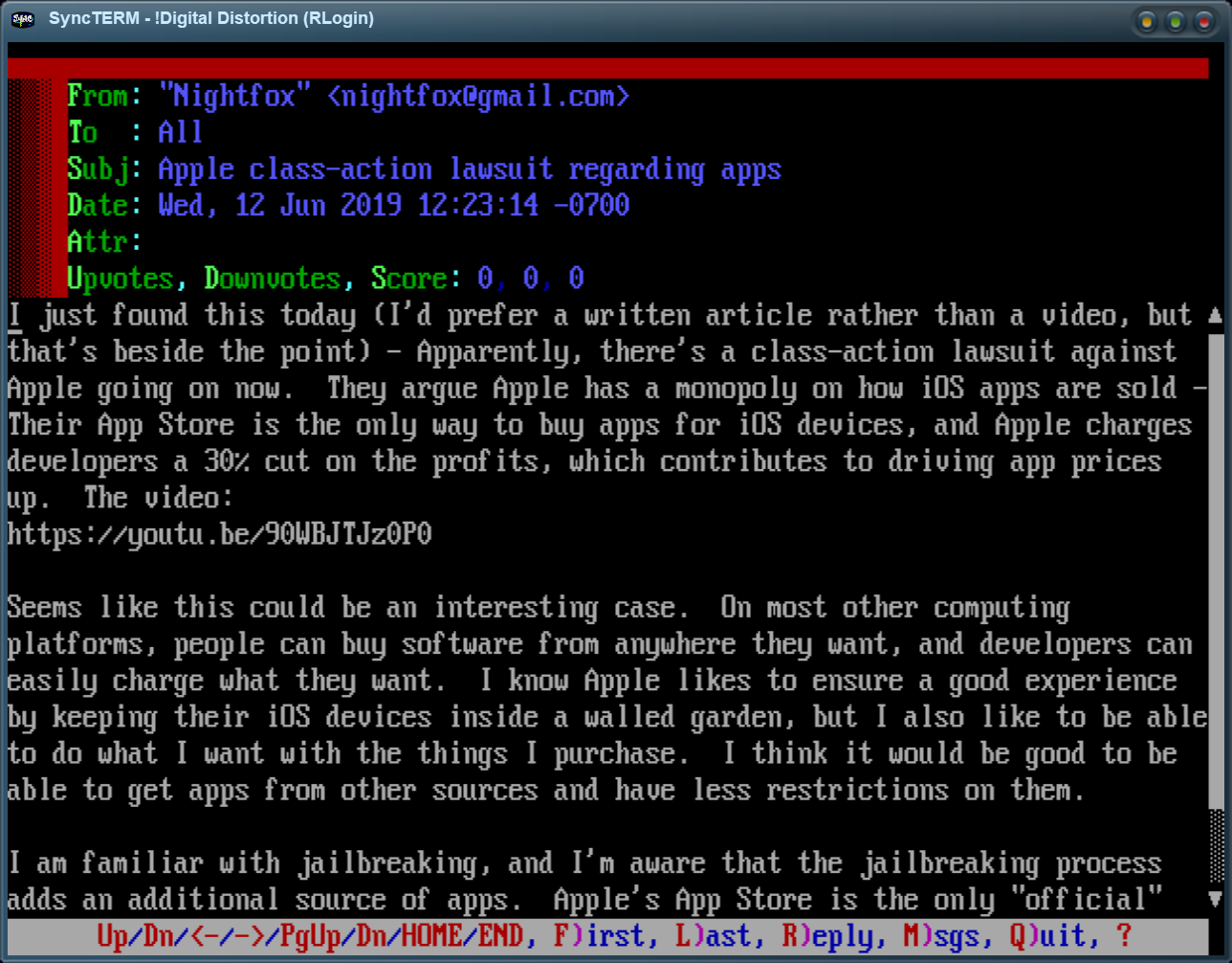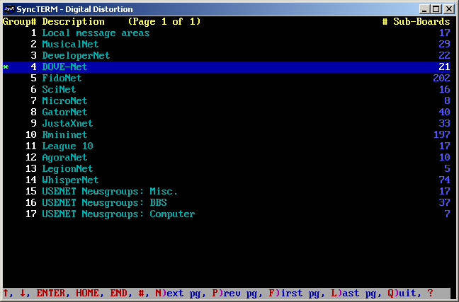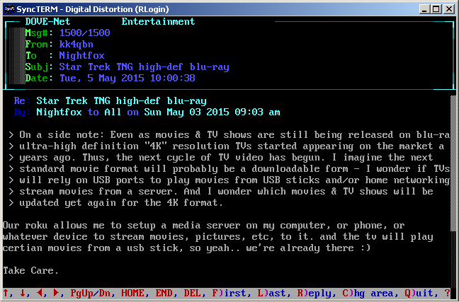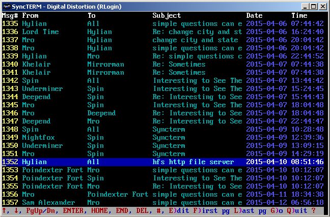 messages in the sub-board, and changing to a different sub-board. Text search is supported