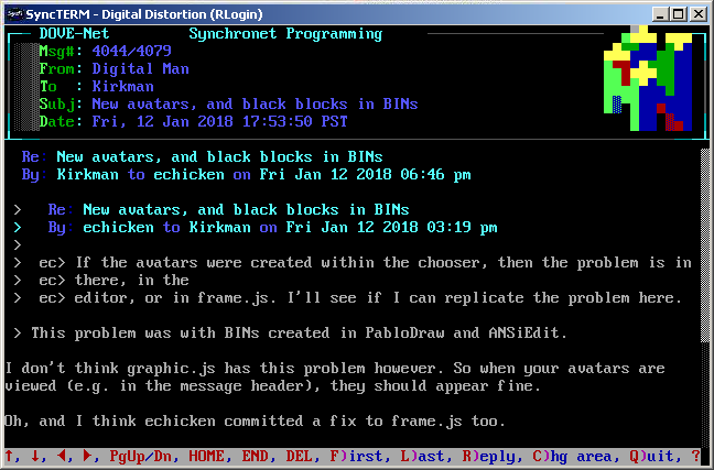 the voting feature and avatars added in Synchronet 3.17. Also, this scan be set up as a